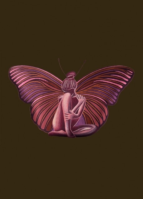 Kunsttrykk av kvinnelig sommerfugl. Symboliserer stadiet fra kokong til sommerfugl i full blomst. Veksten og forvandlingen vi kvinner går igjennom som rommer alle følelser i oss. Motivet er håndmalt i akvarell og trykkes på fint matt papir med meget god fargebestandighet. Kontrasten mellom fine linjer, fargetoner og detaljer skaper et dekorativt blikkfang i hjemmet. Velg også blant ulike størrelser og farget bakgrunn. "Lazy Butterfly" passer fint sammen med de andre motivene i samme serie.