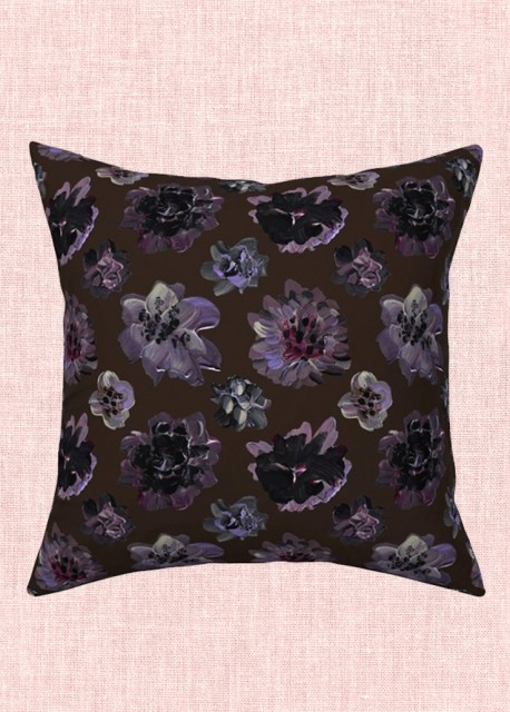 Leveres uten innerpute. Putetrekket tåler å vaskes på 40 grader, men for lengre holdbarhet i farger anbefales det å velge finvask på 30 grader med et mildt vaskemiddel. Strykes eller dampes lett etter tørk liggende på klesstativ. Veldig fine å kombinere sammen med de andre håndmalte blomstene i serien: "Mormormønster"