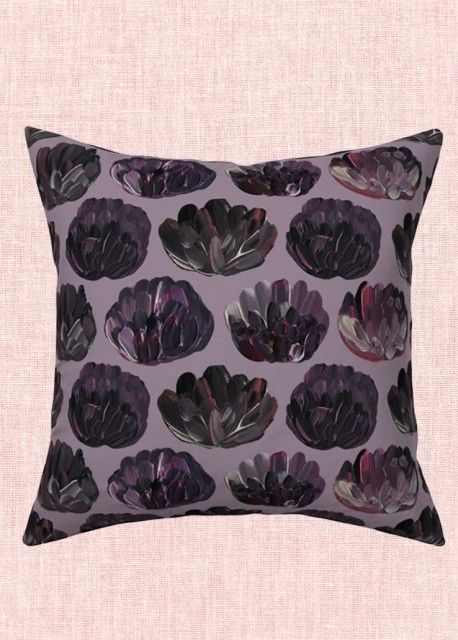Leveres uten innerpute. Putetrekket tåler å vaskes på 40 grader, men for lengre holdbarhet i farger anbefales det å velge finvask på 30 grader med et mildt vaskemiddel. Strykes eller dampes lett etter tørk liggende på klesstativ. Veldig fine å kombinere sammen med de andre håndmalte blomstene i serien: "Mormormønster"