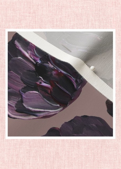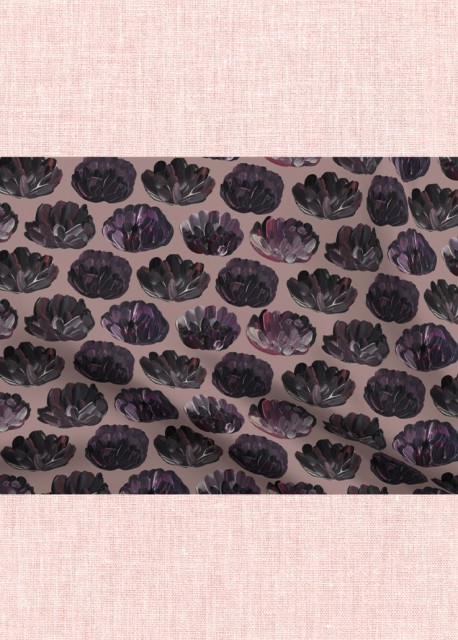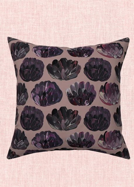 En fin pyntepute med dekorativt mønster av håndmalte blomster i rosa og lillatoner. Fjonge fargeklatter som frisker opp en sofa, utemøbler, seng eller lesekrok. Tekstilet er en blanding av naturlig bomull og lin med litt struktur.
